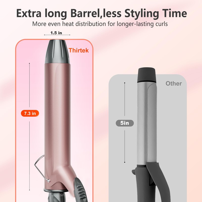 Thirtek Extra Long Barrel Curling Iron 1 1/2 Inch,Large Ceramic Curling Wand 1.5 in,Tailored for Long Hair,Fast Heating Up to 450Β°F for Thick & Coarse Hair,15 Temps Setting | LCD Display | Rose Gold