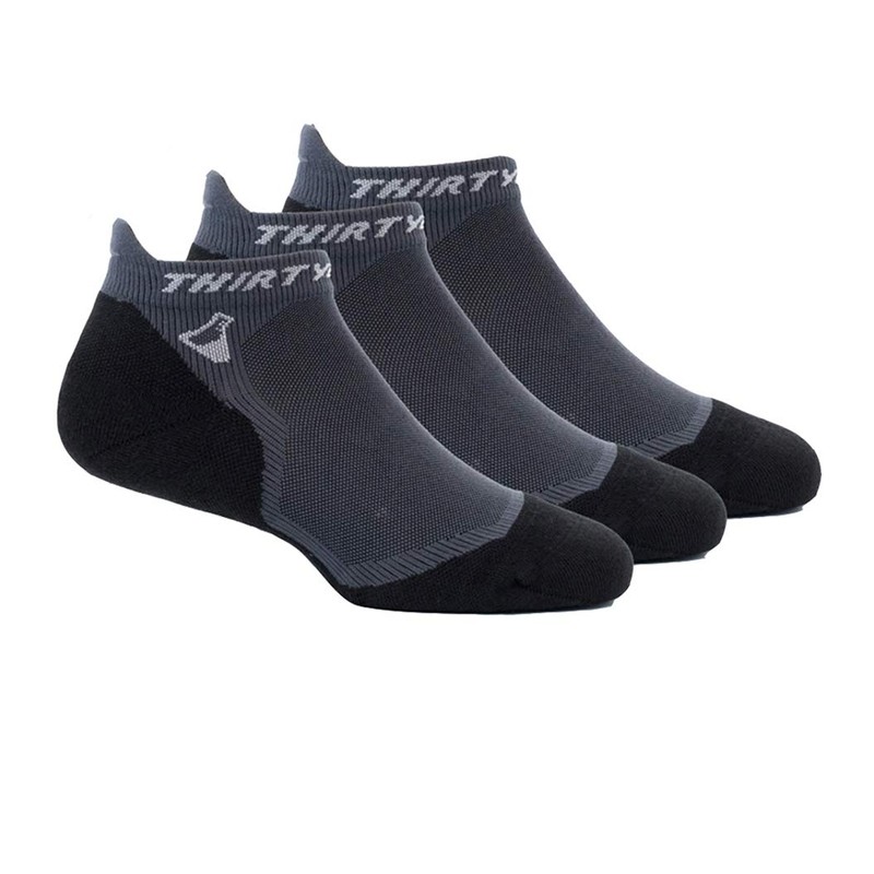 Thirty48 Ultralight Athletic Running Socks for Men and Women with Seamless Toe, Moisture Wicking, Cushion Padding (Large - Women 9-10.5 // Men 10-11.5, [3 Pairs] Black/Gray)