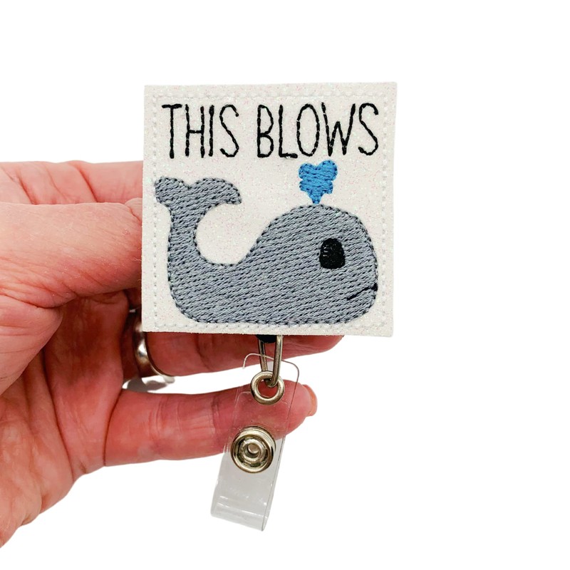 This Blows Badge Reel, Retractable Whale ID Holder, Funny Nautical Animal Name Tag Clip (belt clip)
