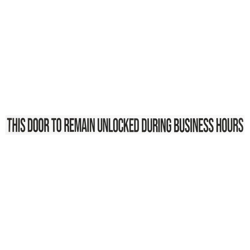 - Easy Application: This "This Door To Remain Unlocked During Bussiness Hours" sign can be applied to a variety of surfaces, including wood, steel, concrete, glass, and metal