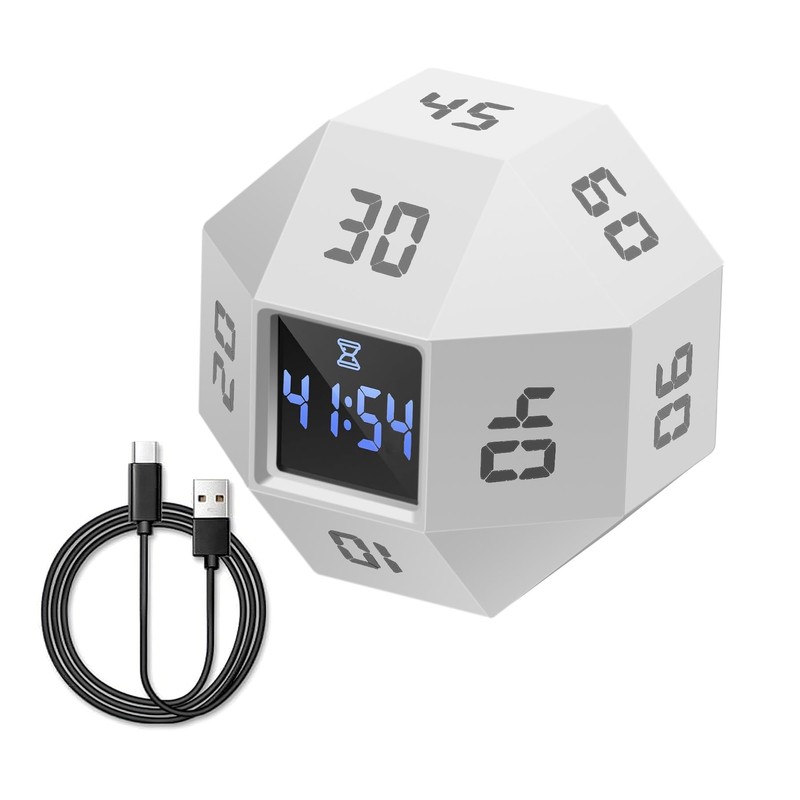 - 【Various preset times】The 12-sided timer features 11 preset countdown durations (in minutes: 5, 10, 15, 20, 25, 30, 35, 40, 45, 60, 90). With a simple flip, the timer starts in just one second. The compact LCD screen ensures clear and easy-to-read digital display. Equipped with a built-in gravity sensor, it supports both count-up and countdown modes: rotate clockwise for count-up and counterclockwise for countdown.