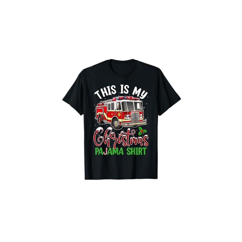 • This Is My Christmas Pajama Shirt Fire Truck Firefighter Men tee for men guys women boys kids Santa elf reindeer lovers EMT EMS firefighters fire engineers volunteer retired firemen rescuers to celebrate Christmas party with family friends on December 25th