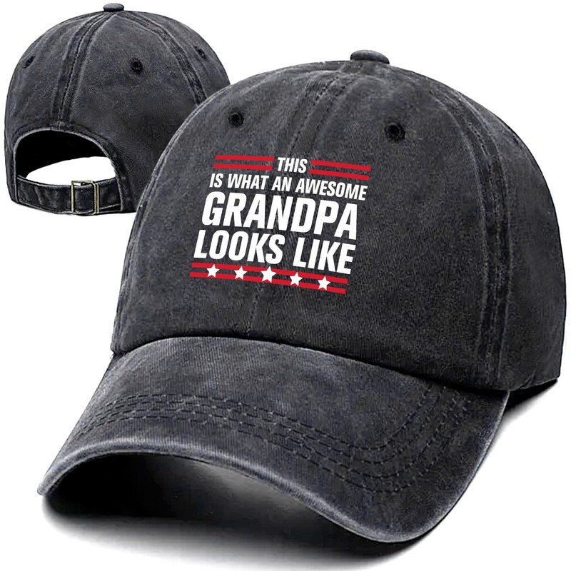 This is What an Awesome Grandpa Looks Like Funny Retro Washed Cotton Baseball Cap, Adjustable Lightweight and Breathable Unisex Outdoor Hat, for Birthday Father's Day Men Dad Grandpa Husband Gifts