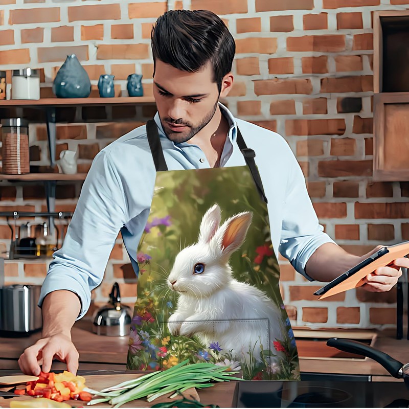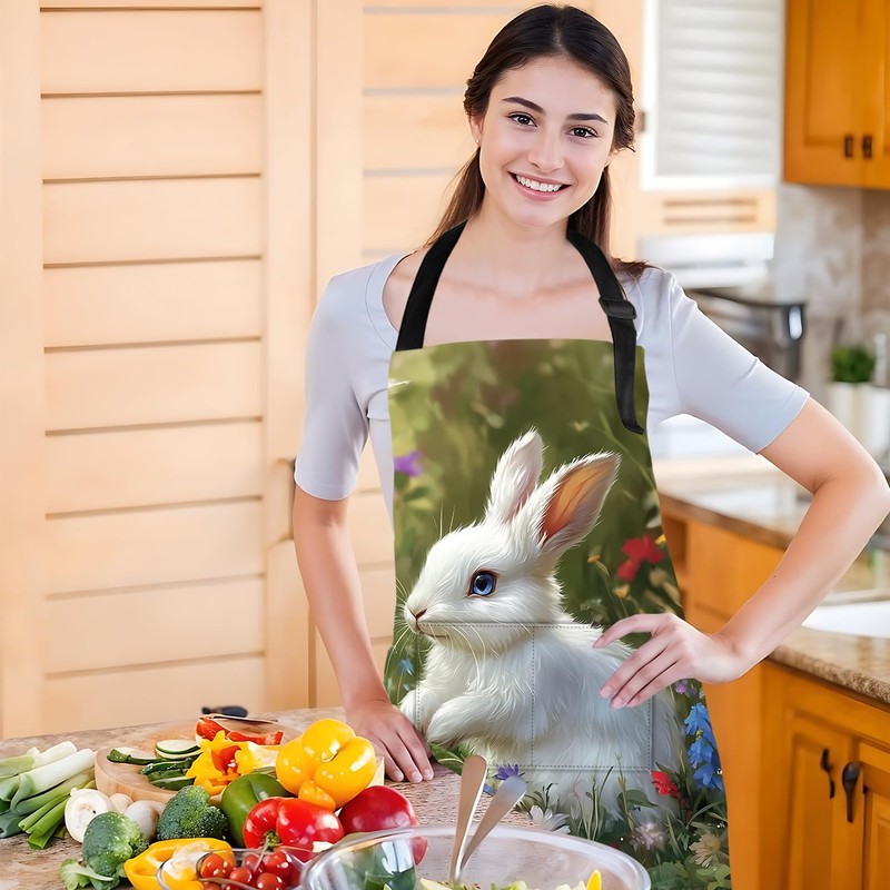 THISFIND Funny Rabbit Apron for Women Men with 2 Pockets, Adjustable Kitchen Chef Aprons for Cooking Baking Gardening Cute Apron
