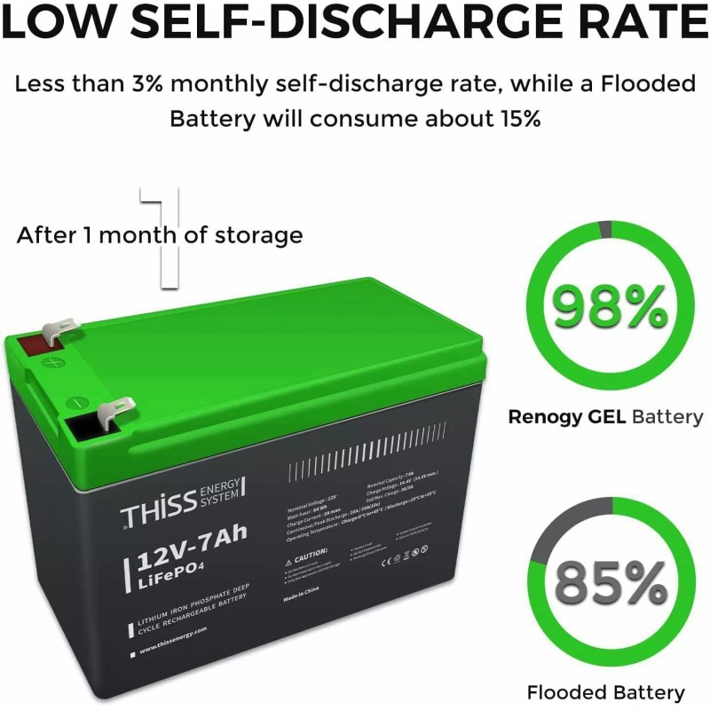 Thiss Energy System 12V LiFePO4 Battery 7Ah Cycle Maintenance Free Home Energy Storage Battery NEW