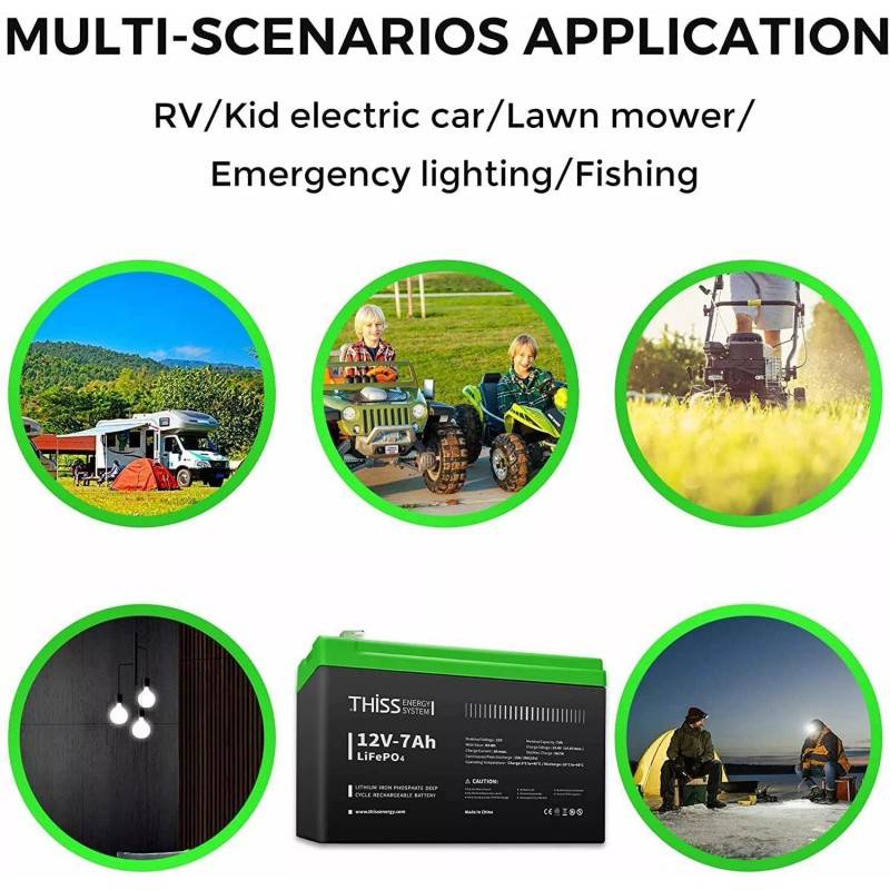 Thiss Energy System 12V LiFePO4 Battery 7Ah Cycle Maintenance Free Home Energ...