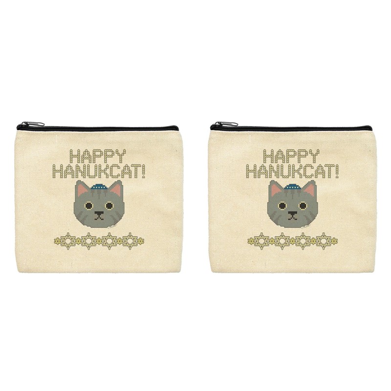 ThisWear Hanukkah Ugly Sweater Hanukkah Happy Hanukcat 2-Pack Cosmetic Accessory Bags