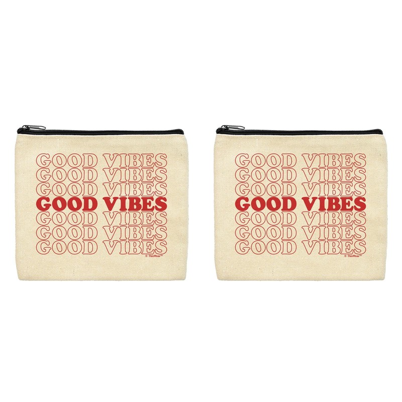 ThisWear Motivational Gifts For Women Good Vibes Retro Style 2-Pack Cosmetic Accessory Bags