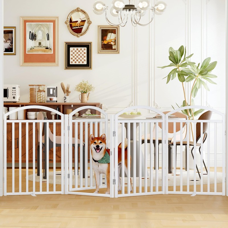 - Multifounctional Dog Fence:Our foldable dog fence can be extended for use as a dog gate, dog pen, dog playpen, or dog barrier. It is suitable for a variety of locations, including front doors, entrances, living rooms, bedrooms, stairs, kitchens, balconies, and backyards.