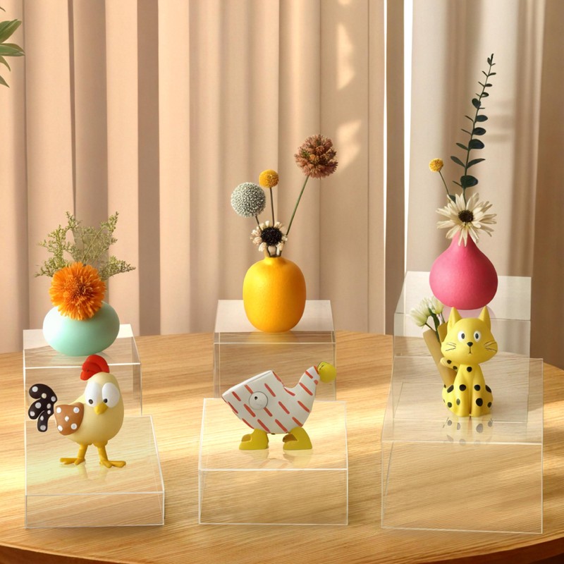 - Display Risers:The acrylic display riser cubes are designed to be nestable and stackable, featuring a hollow bottom. These versatile pieces can serve as both display stands and organizers, helping to meet your everyday decoration and storage needs