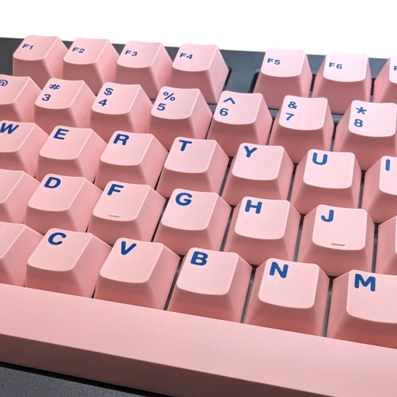 Thock King's Cosmos Blue on Pink Cherry MX keycap set can help give your mechanical keyboard and desk setup that pop you've been looking for with pink ABS double shot keycaps with blue legends. This keycap set is perfect for any gaming or office set up and come with 146 pieces which is ideal for keyboard sizes: 61, 64, 68, 84, 87, 98 and 104. These keycaps are durable and made of double shot ABS material which is know to be a step above the standard sublimation dye process and and is in the keyboard enthusiasts favorite Cherry MX profile.