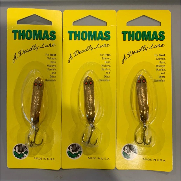 3 Packs Thomas Lures 1/8oz Gold Eel wiggler. Condition is New. Shipped with USPS First Class Package.