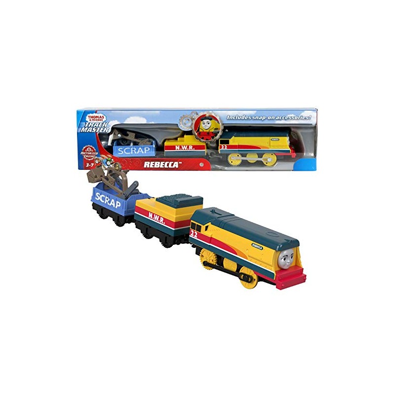 Thomas and Friends Year 2018 Trackmaster Series Motorized Railway 3 Pack Train Set - Rebecca with Coal Loaded Car, Cargo Car & Clip-On Digging Gear