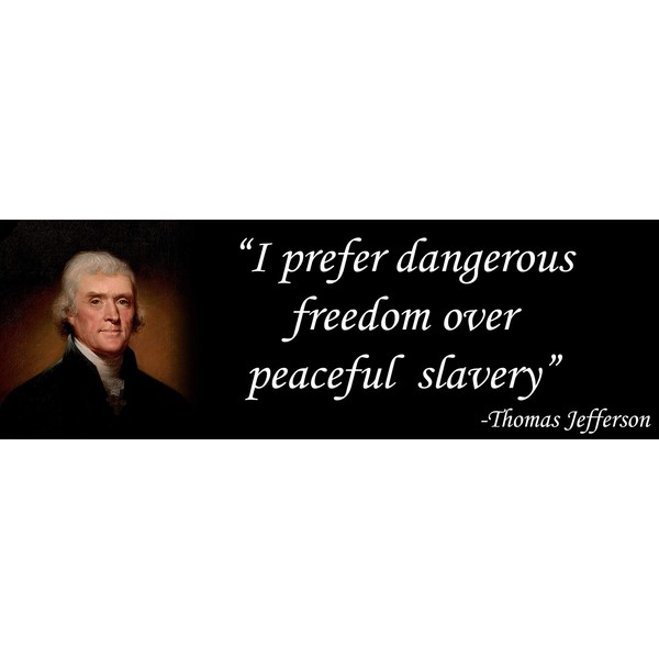 • Libertarian Thomas Jefferson "I prefer dangerous freedom over peaceful slavery" sticker.