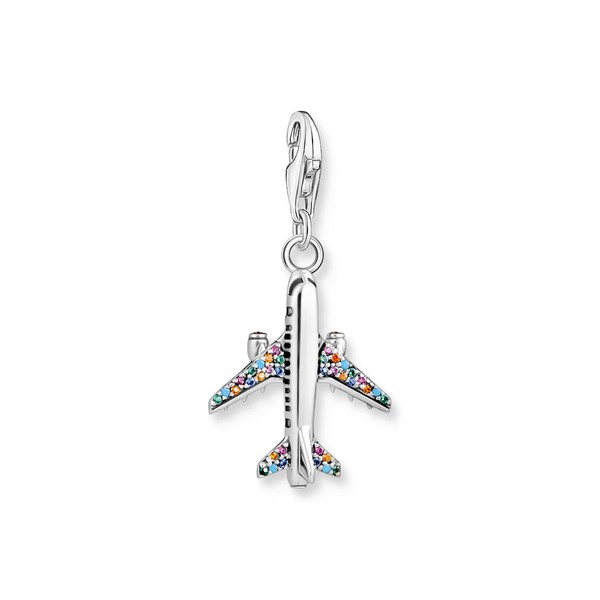 THOMAS SABO Colourful Plane Charm Recycled 925 Sterling Silver Charm 1914-342-7, Silver, Cubic Zirconia