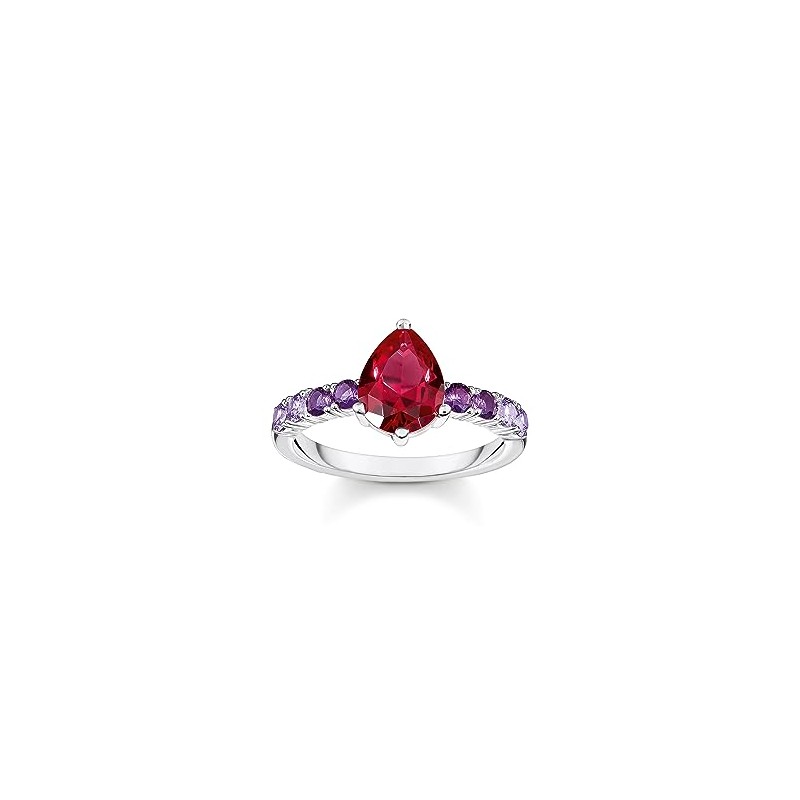 THOMAS SABO Red Teardrop Ladies Ring TR2442-477-7-56 Size N, Sterling Silver, Cubic Zirconia
