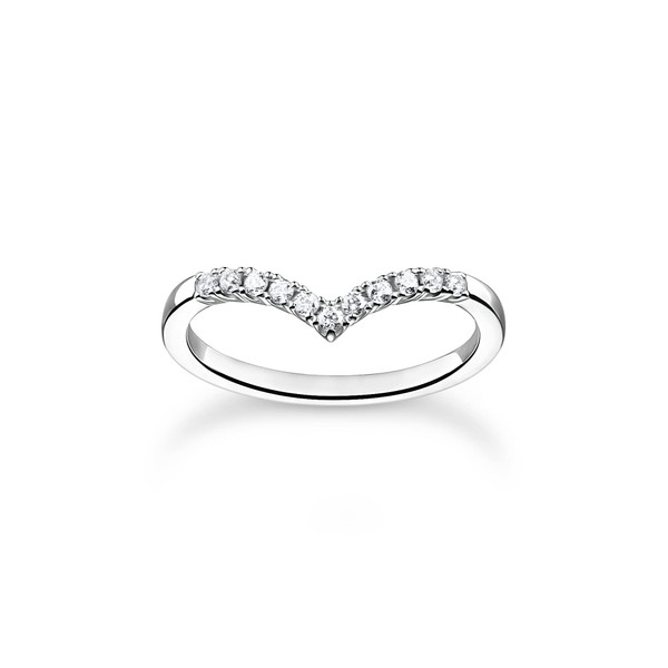 THOMAS SABO Women's V Shape Ring with White Stones, Sterling Silver, Cubic Zirconia