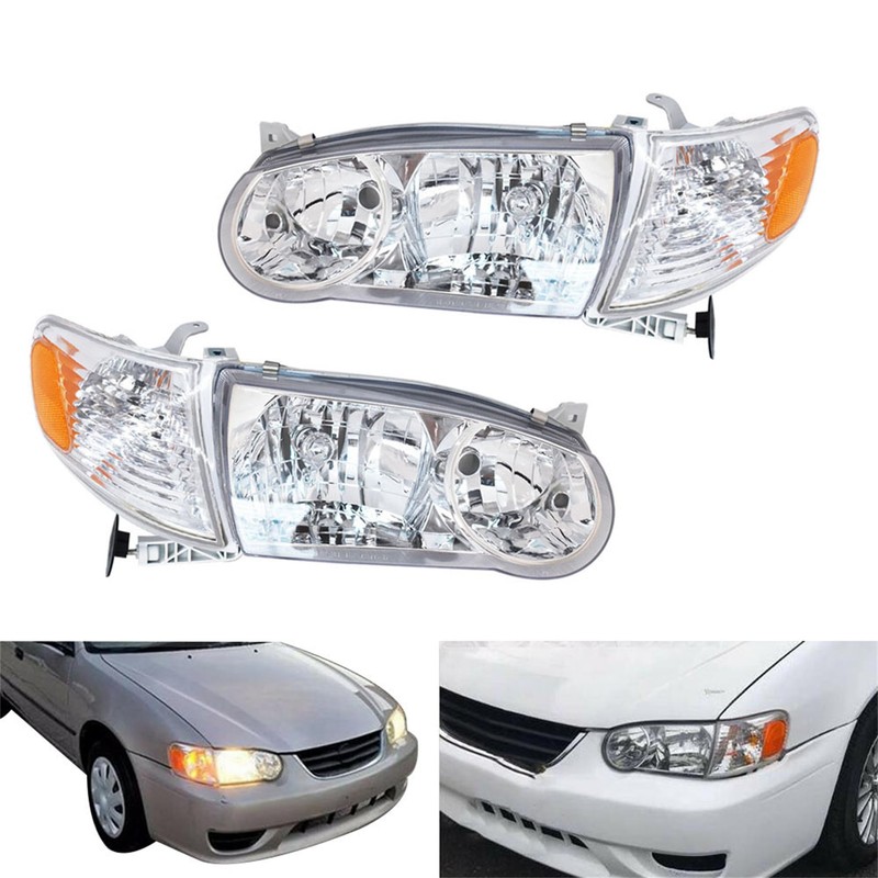 Headlights assembly replacement for Toyota Corolla 2001-2002 driver and passenger side with corner signal light