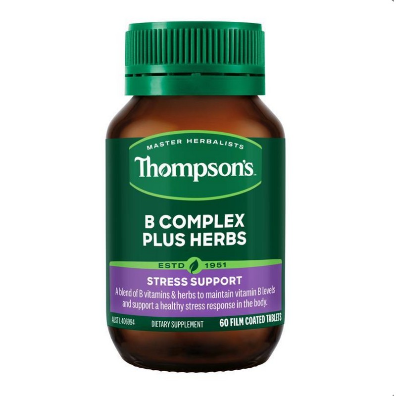 Thompson's B Complex Plus Herbs is a blend of B vitamins & herbs to maintain vitamin B levels and support a healthy stress response in the body.Suitable For: Adults - Take one tablet twice daily (with food), or as professionally prescribed.