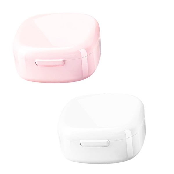 Product details: our product contains 2 denture cases, our denture cases are available in white and pink. The size of each denture case is 7.8 x 7.8 x 3.8 cm