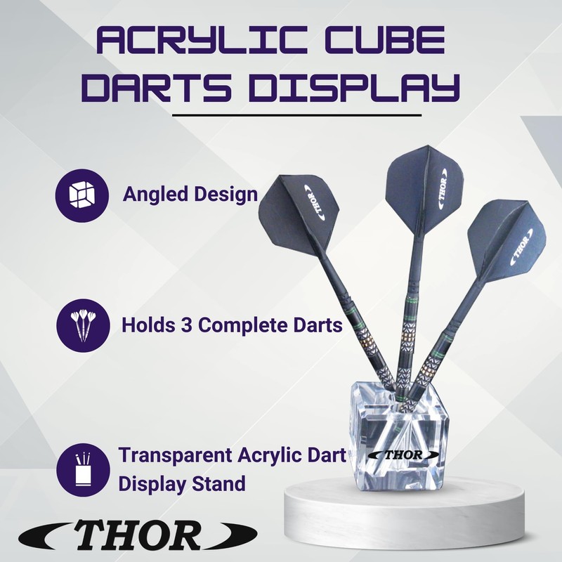 THOR-DARTS The Cube 3-Piece Dart Display - Acrylic Dart Stand - Dart Display ...