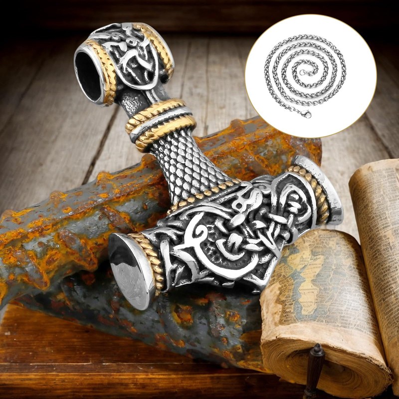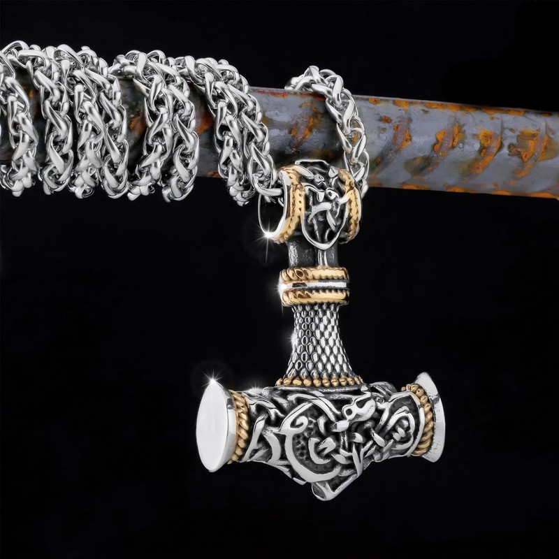 - Thor's hammer necklace: The Thor's hammer is one of the most powerful symbols of Northern Europe. Thor's hammer is a symbol of power and strength and was often used as a religious amulet in the Viking era. The Viking style pendant is combined with a robust stainless steel chain and provides a masculine look.
