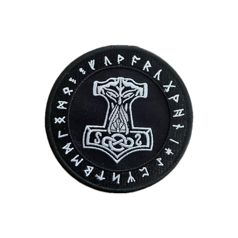 Thor's Hammer in Rune Circle Black Patch, Embroidered Mjölnir Patch for Sew-On Viking Thor Hammer, Thunder God, Donar, Runes, Vikings Fan Gift