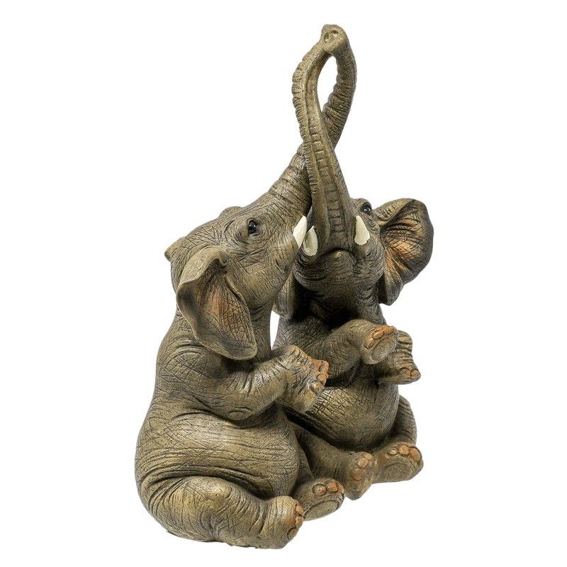 • Mr & Mrs Elephant Ornament - Pair of Loving Elephants in Sitting Pose Figurine. Approximate Dimensions 19cm Tall by 14.5cm Wide by 8cm Deep