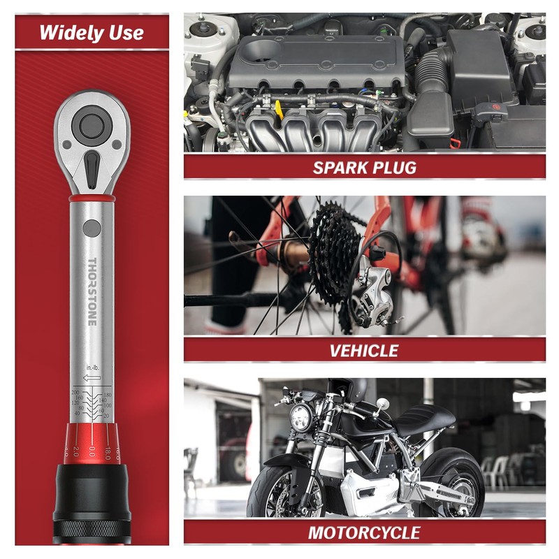 Thorstone 1/4 Torque Wrench, 20-200 in.-lb./ 2.26~22.6Nm Dual-Direction Adjustable Micrometer Click Torque Wrench, 72-Tooth Gear, ยฑ2% Clockwise High Accuracy Reversible Dual Range Scales