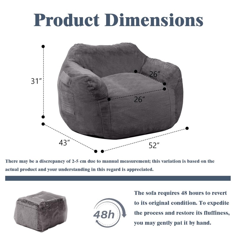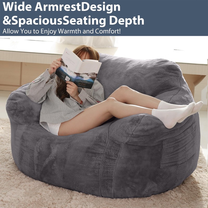 Thoustars Large Bean Bag Chair for Adults - Oversized Memory Foam Filled Sofa with Plush Faux Fur Perfect for Living Room, Bedroom, Dorm - Dark Gray