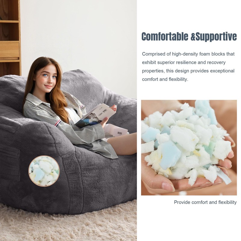 - 【Cloud-Like Comfort】Sink into the ultra-soft plush faux fur and memory foam filling that molds to your body, offering gentle yet firm support for your back, hips, and legs. Perfect for hours of relaxation.