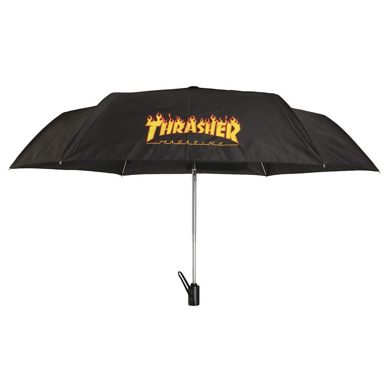 THRASHER FLAME Automatic Open and Close Folding Umbrella, Black, 22.8 inches (58 cm), Fire Pattern