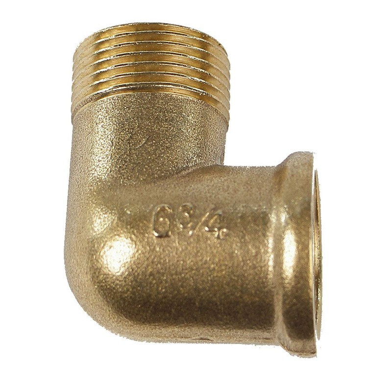 L6 thread: thread in L shape with 3/4 inch internal thread to 3/4 inch male thread made of copper.