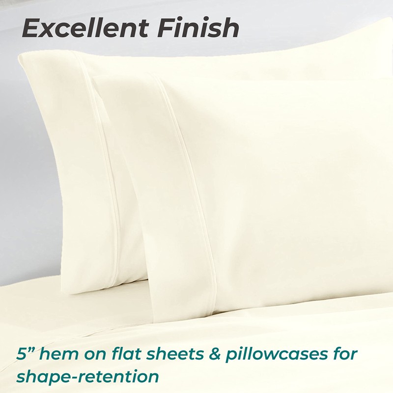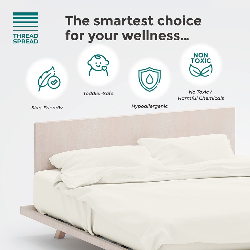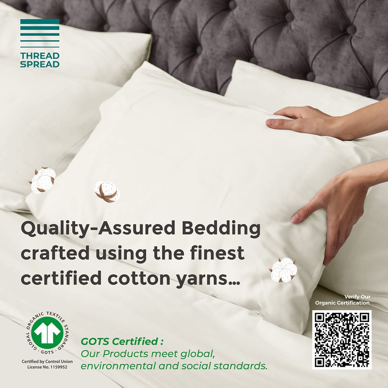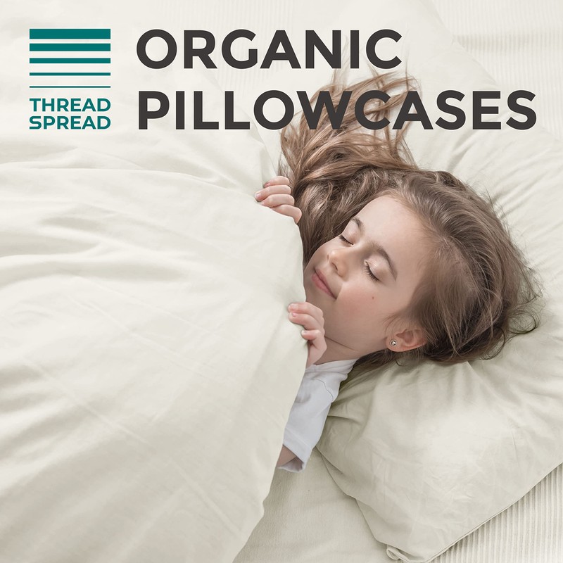 THREAD SPREAD 100% Organic Cotton Pillowcases - Soft and Crisp, Cooling Percale Weave, Breathable Pillow Covers, Set of 2 (Queen Size, Ivory)