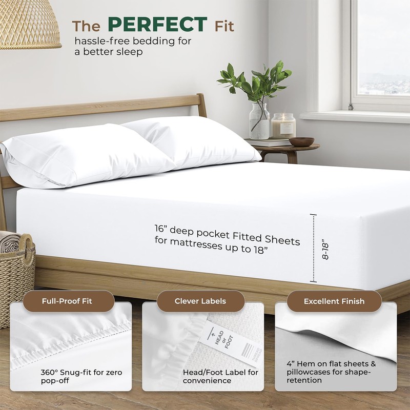 • Include A Complete 4 Piece Sheet Set: Our queen cotton sheet set include: 1 top or flat sheet (90” x 102”), 1 fitted or bottom sheet (60” x 80” + 16”), and 2 Standard / Queen size pillow cases (21” x 32”). Fitted bedsheets have extra wide deep pockets and all-around elastic to fit the mattress. Head/foot tags indicate the length and breadth sides of the sheet to quickly make the bed. For more products, you can visit our Thread Spread Storefront