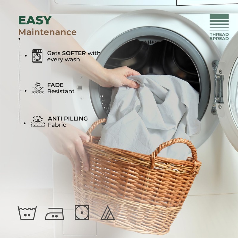 • Fade & Pill Resistant: Here’s the thing about our queen organic cotton sheets: They get softer with every wash. Machine wash warm at home and tumble dry on low heat. Do not use chlorine or bleach. These queen size cotton sheets retain their color and do not pill (for real). They do wrinkle though, as percale does. Either use dryer balls during the wash or iron them afterward to reduce wrinkles