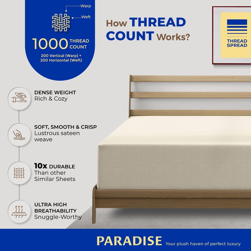 Thread Spread Thread Spread Luxury Egyptian Cotton Twin XL Fitted Sheet Only - 1000 Thread Count Twin XL Sheets Deep Pocket Fitted, Soft Sateen Weave Bottom Sheet - Fits Upto 18" Deep Mattress - Ivory