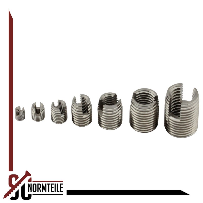 Threaded inserts (self-tapping) with cutting slot – M6 – (5 pieces) – made of stainless steel A1 (VA) – NIRO – SC9058 | SC-Normteile®