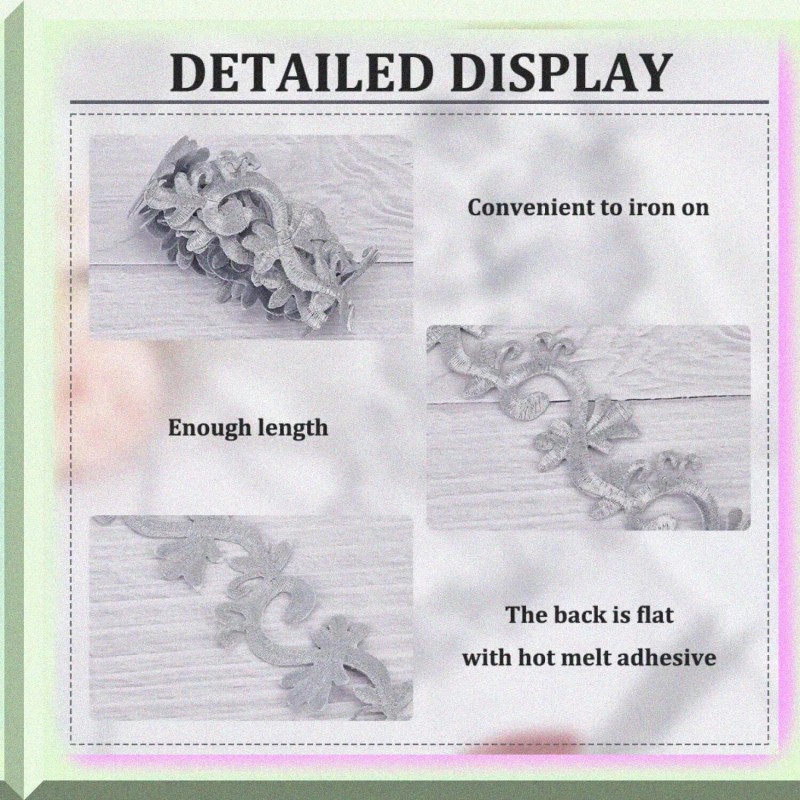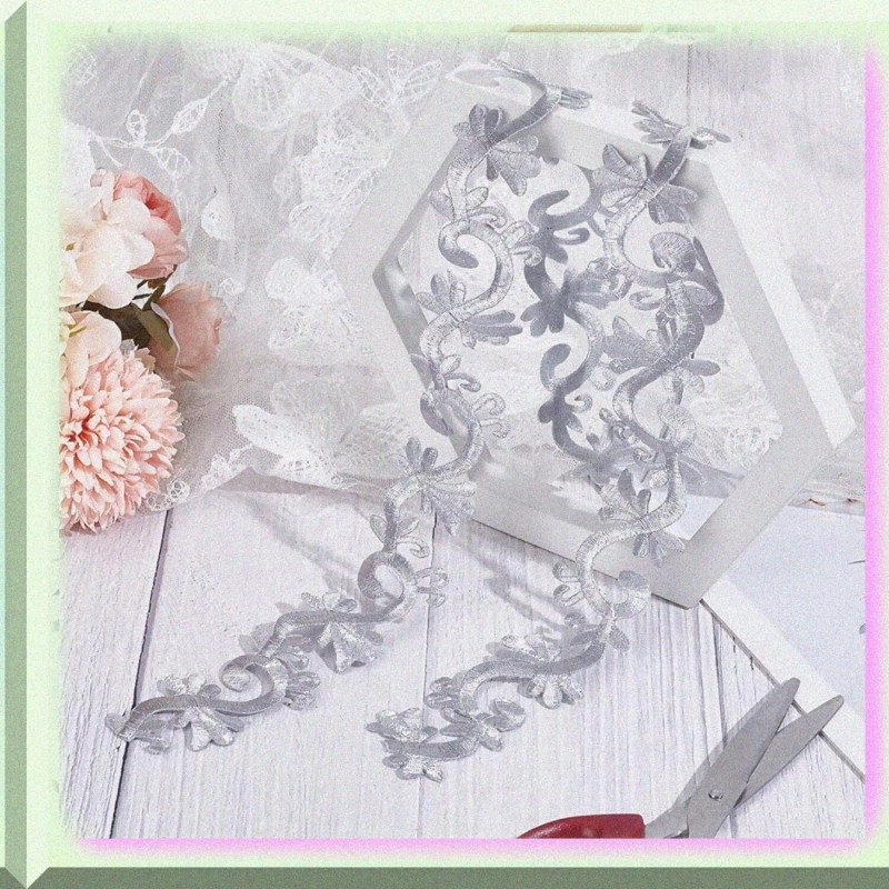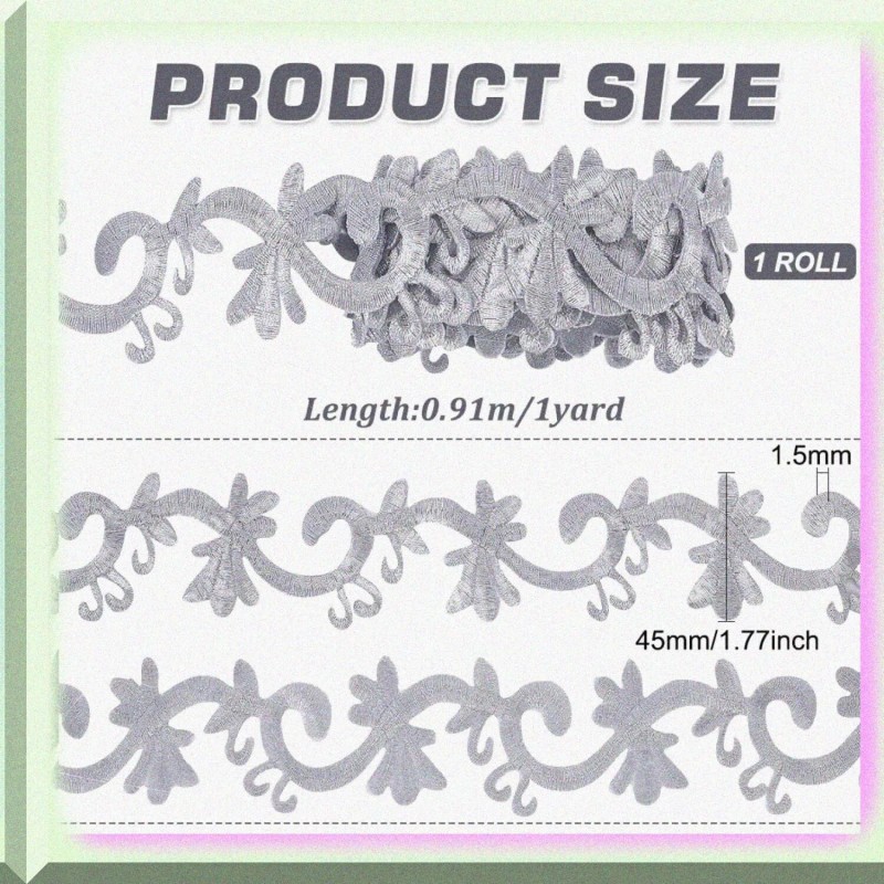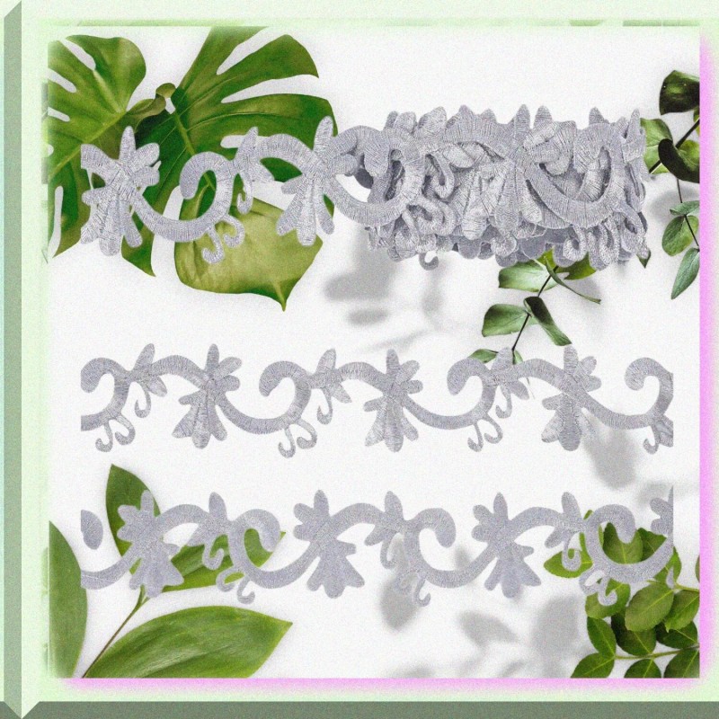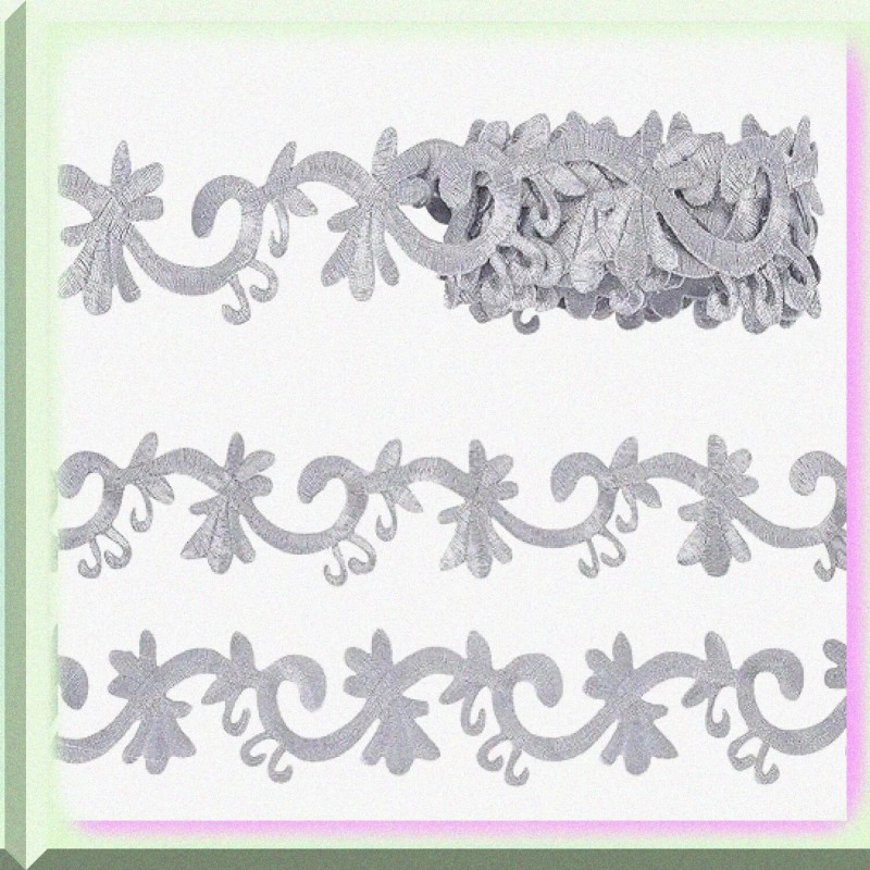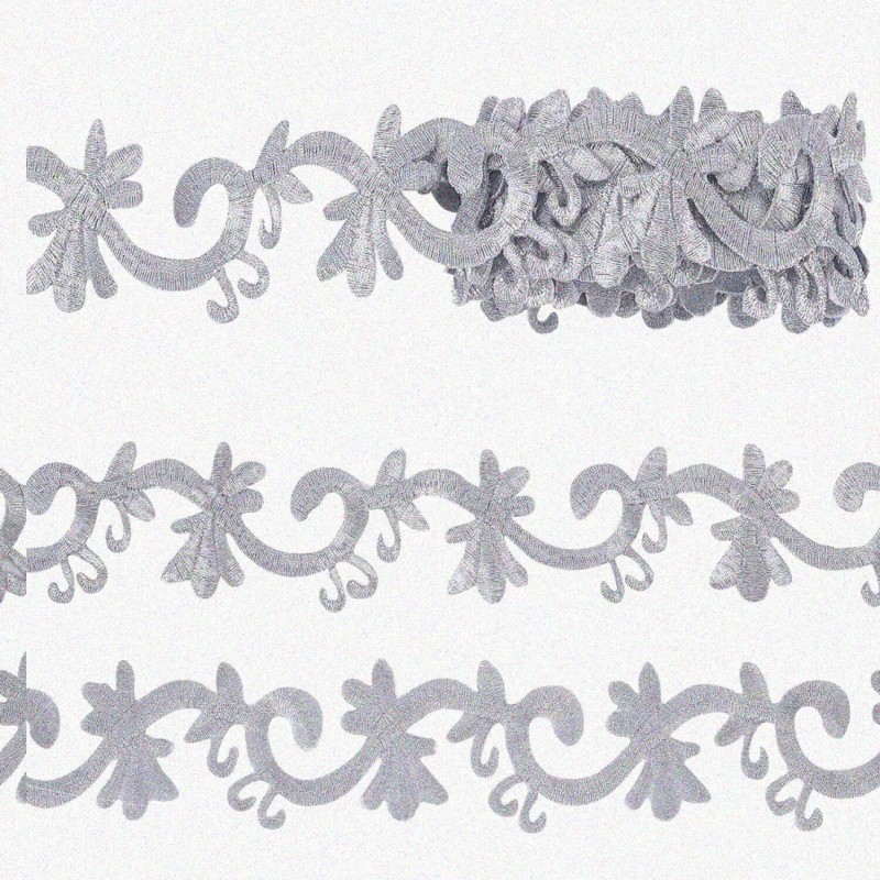(C) **Eye-Catching Elegance**: The silver hue of our embroidered trim catches the light beautifully, creating a stunning visual effect that draws attention and admiration. Ideal for special occasions, weddings, and festive decorations, this trim transforms ordinary items into extraordinary pieces. Its timeless elegance ensures that your creations will stand out and leave a lasting impression.