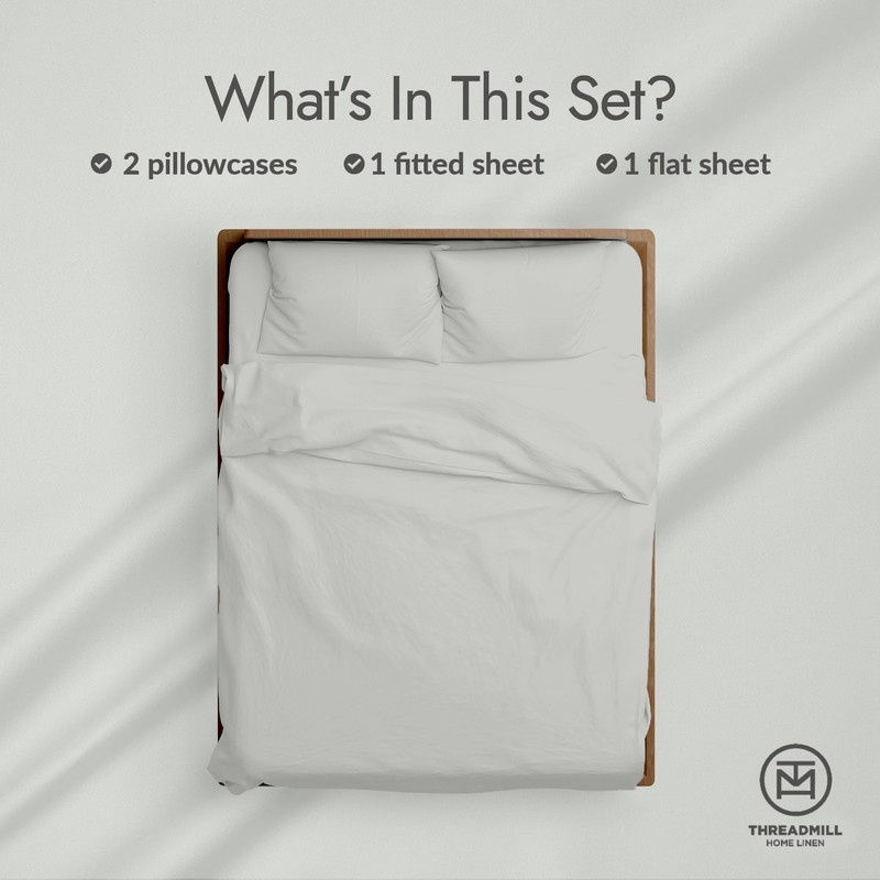 Threadmill 100% Organic Cotton Sheets - Queen, 4 Piece, Light Grey - Certified by GOTS - Soft and Cooling Bedsheet Set with Reusable Bag, Snug Fit with 16" Deep Pocket - Ultra Light
