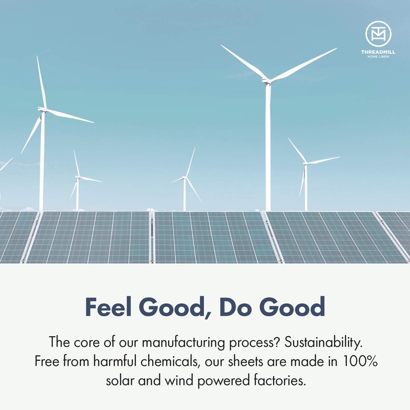 - SUSTAINABILITY: Sustainable OEKO TEX Certified product free of harmful chemicals. Made in a state of the art vertically integrated factory entirely powered by Solar and Wind energy. No plastics are used in packaging. Sheet sets are packed in a re-useable tote bag made from 100% ELS cotton.