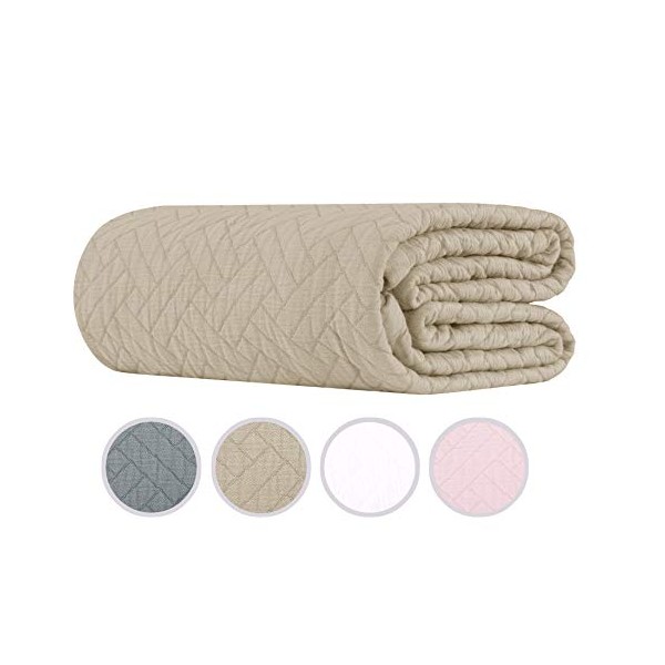 Threadmill Twin Size, Soft Beige Blanket/Coverlet - Premium & Luxurious Quality, Made from 100% Long Staple Combed Cotton, Jacquard Matelasse Finish Bedspread Comforter for All Seasons, 68x90 inch