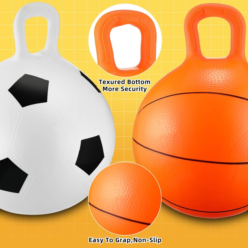 - Package Includes: there are 2 pieces of hopper balls in soccer ball and basketball style, sufficient quantity and patterns can meet your needs for sports, convenient to use