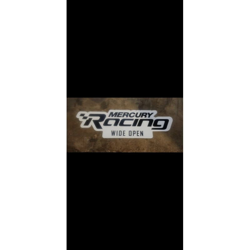 YOU ARE BUYING A MERCURY RACING " WIDE OPEN " DECAL. DECAL MEASURES 8 INCH by 2-1/2 inches tall. THANKS FOR LOOKING AND HAPPY BOATING.