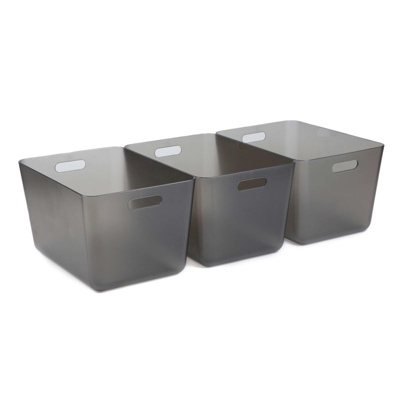 Three by Three Seattle Restak Recycled Storage Medium Tall Bin Set of 3 | Eco-Friendly, Durable & Space-Saving Bins for Home or Office, Translucent Gray