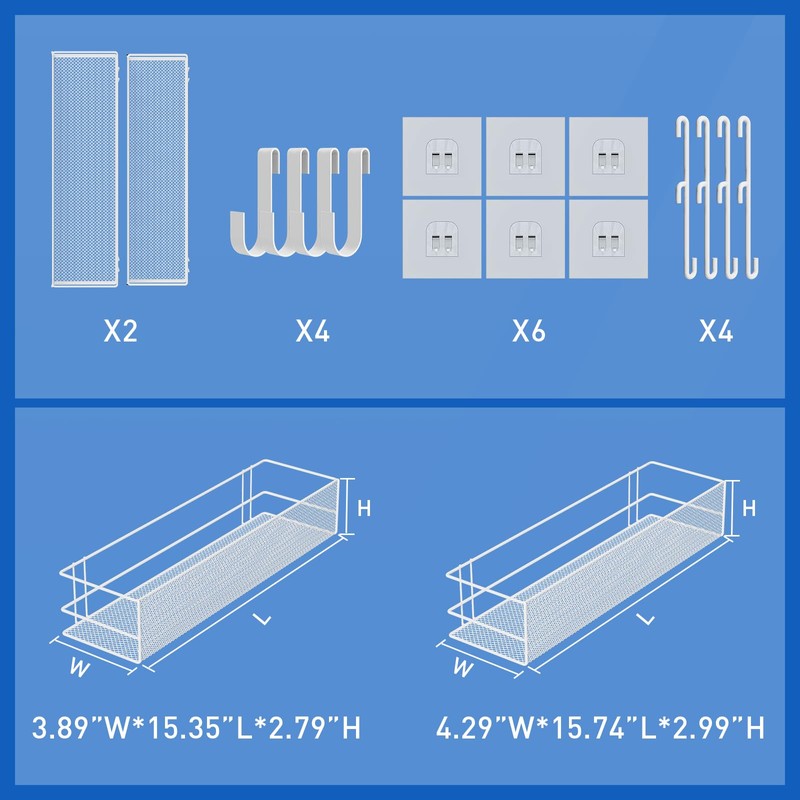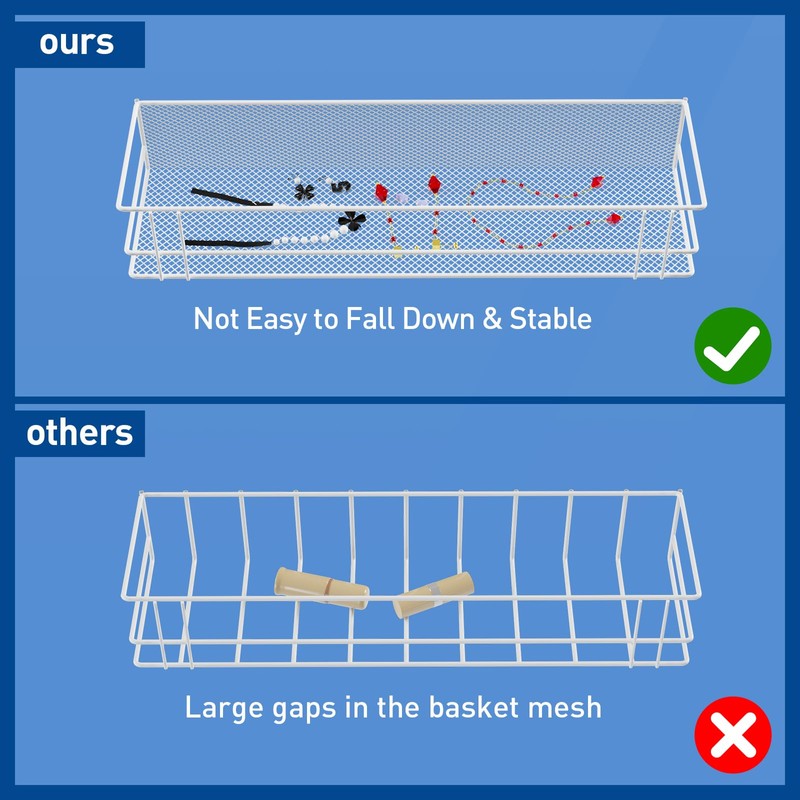 - 【Large Capacity】: The smallest hanging basket size is 15.4"(L)*3.9' '(W)*2.8''(H), and the maximum basket size is 15.8(L)''*4.3(W)''*3''(H). Please check the size carefully before you buy it. Fit right where you needed extra storage.