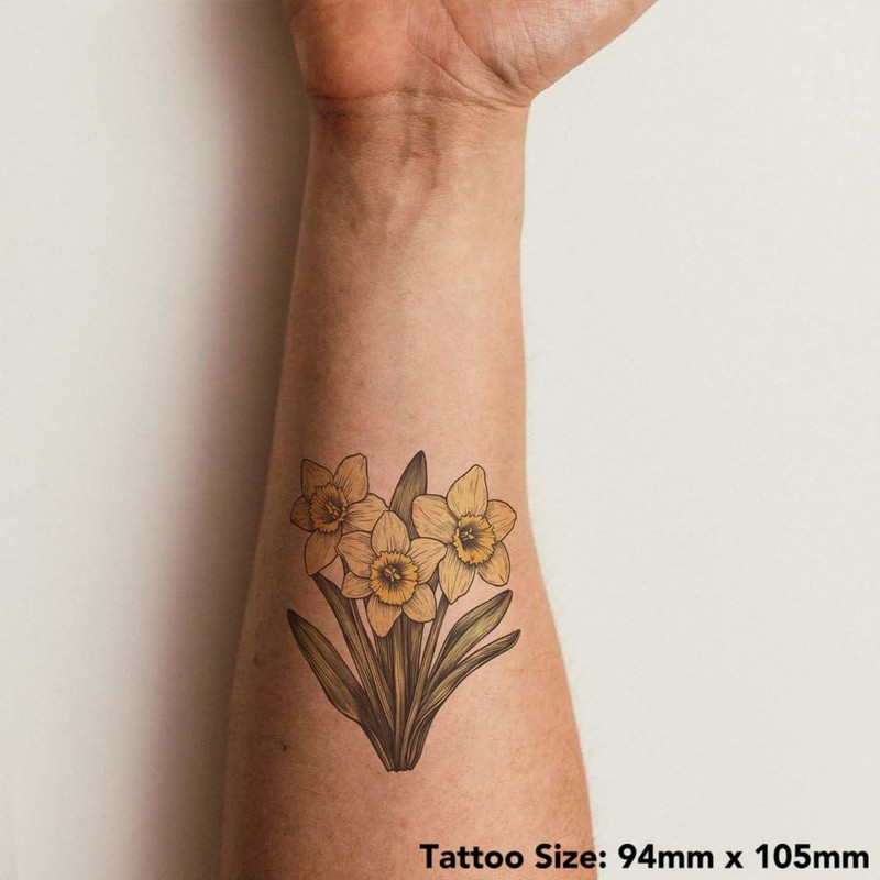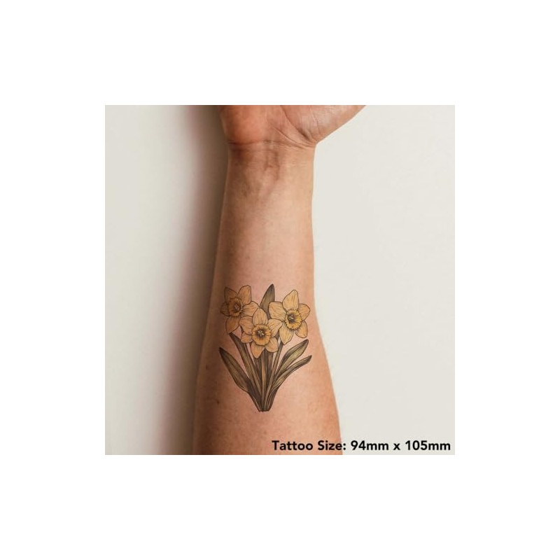 ' Three Daffodils' Temporary Tattoo - Water Resistant, Skin-Safe, Non-Toxic T...