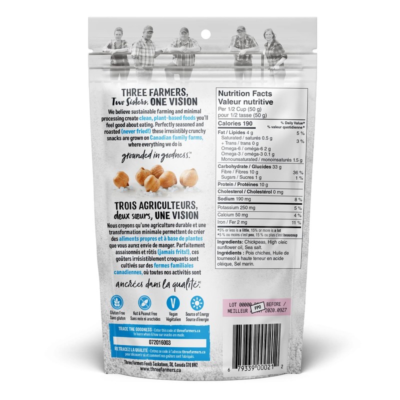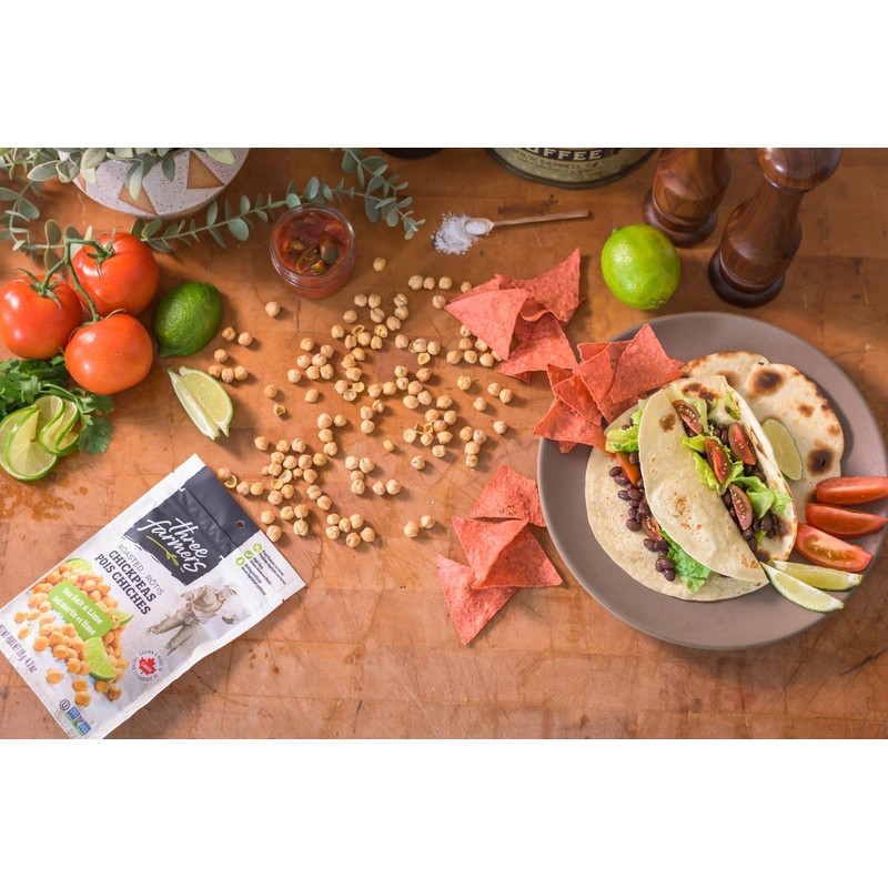 - π― ππ ππππ‘π ππππ©π’π¨π₯π¦, π©ππ₯πππ§π¬ π£πππ β This variety pack lets you enjoy 3 of your favourite flavourful Three Farmers roasted chickpea snacks: Barbecue, Sea Salt & Lime, and Turmeric & Spice. Choose the irresistible taste of tangy barbecue sauce, a zip of lime with a salty crunch or reap the anti-inflammatory benefits of turmeric. Three Farmers roasted chickpeas are a great snack that you can enjoy right out of the bag. Sold as a 3-Pack. Contains 1x 120g bag of each flavour