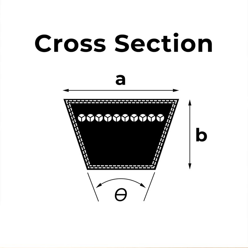 - Specifications: * Outside Circumference: 42 (in) * Inside Length: 40 (in) * Width (a): 1/2 (in); 12.5 (mm) * Height (b): 5/16 (in); 8 (mm) * Angle (ϴ): 40 (°) * Approx. Weight: 0.26 (lbs); 120 (g). Image is for illustration only.