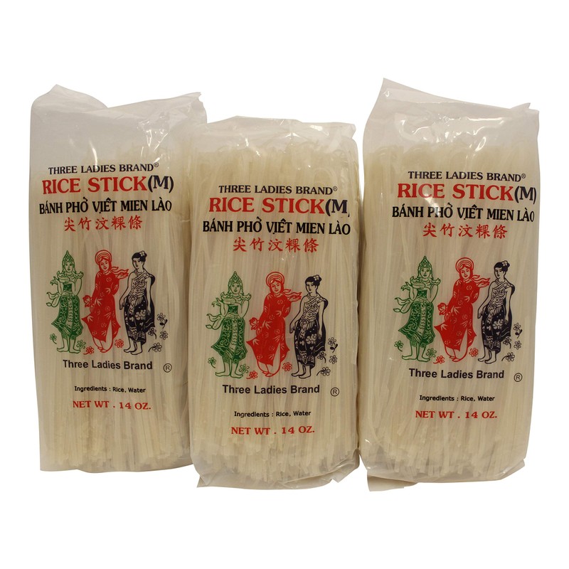 Three Ladies Brand Rice Stick Noodle - 14 Oz. (Pack of 3 Bags)